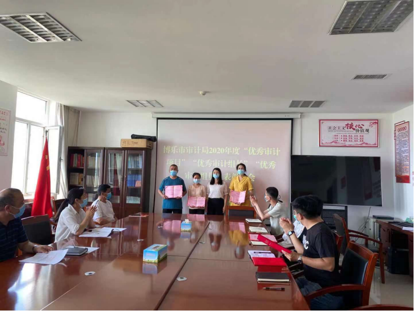 为激励干部干事创业积极性,营造比赶超的工作氛围,博乐市审计局近期对2020年审计项目进行了综合评比,经局党组研究决定产生了2个优秀审计项目、2名优秀审计组长、3名优秀审计组员。6月10日,市审计局召开表彰大会,对优秀项目和个人进行了表彰。