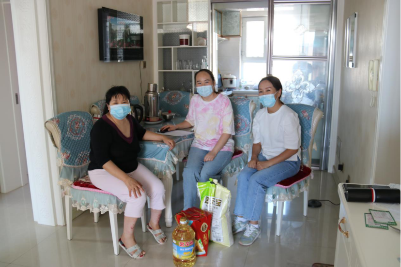 工作队来到博瑞轩居民骆雪梅家,骆雪梅因大脑萎缩导致四肢无法正常活动,小腿也因类风湿长满水泡,丧失了劳动能力,没有经济来源,日常还要支付大笔医药费,生活特别困难。当看到工作队送来的慰问品,骆雪梅高兴的说:“家里刚好没大米了,你们就送来了,你们就像我的亲人一样时刻记挂着我,给我带来温暖。虽然病痛折磨着我,但我依然觉得生活是美好的。”工作队和社区干部时刻记挂着她,每逢传统节日,一定会去她家慰问她。平时也隔几天就去她家或是打电话问问她有没有什么需要送的带的东西。