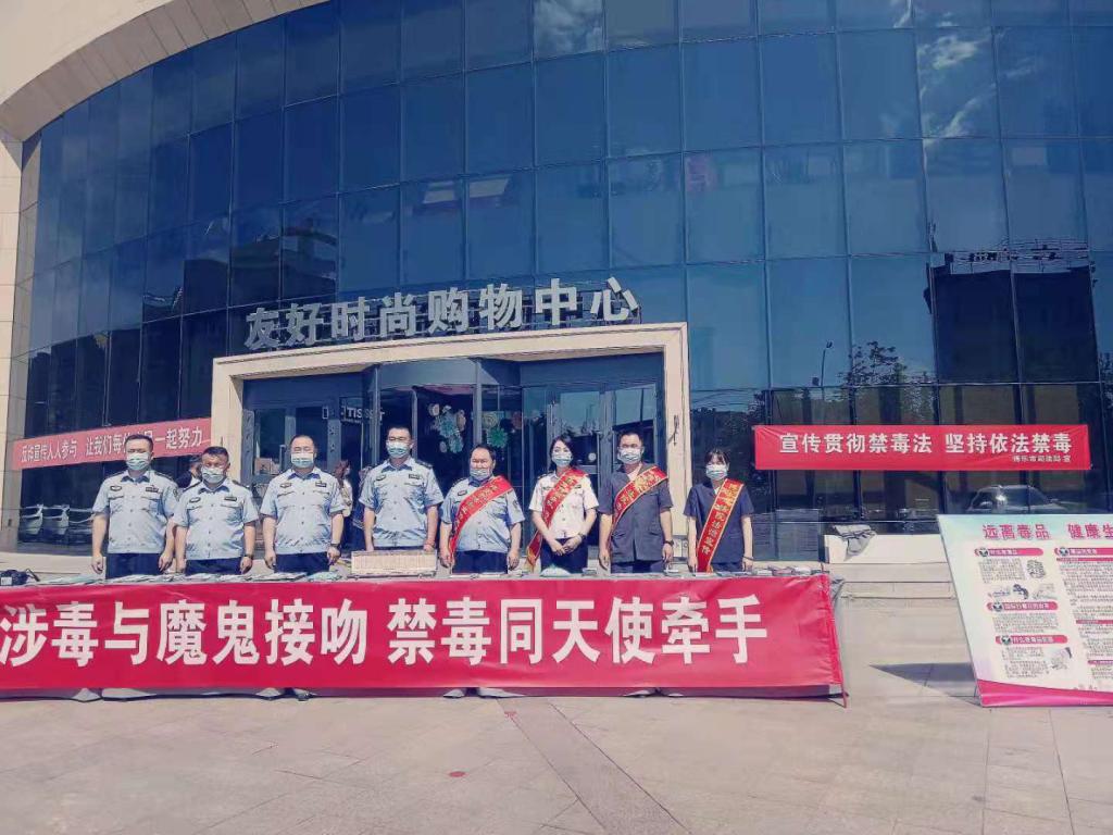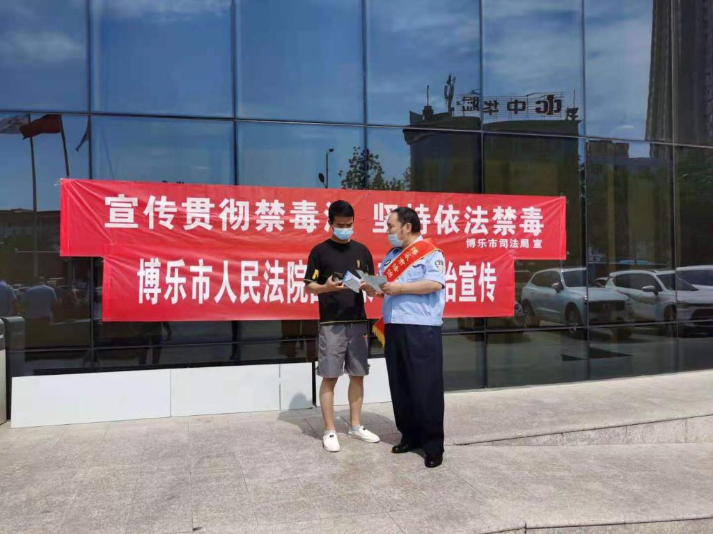 为进一步提高我市广大市民群众对非法集资危害性认识,同时为了提高全民禁毒意识,6月26日,博乐市司法局在“6·26”国际禁毒日当天上午,联合市人民法院、市公安局在博乐市新友好门前开展防范和处置非法集资法制宣传活动暨“6·26国际禁毒日”禁毒宣传活动。
