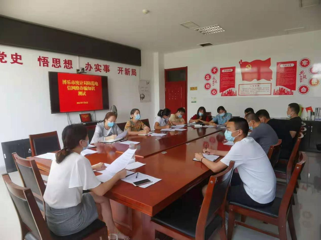 为切实加强反诈骗安全防范教育,提高全体干部职工的反诈骗能力,2021年7月8日,博乐市统计局组织开展了防范电信网络诈骗知识培训及测试,切实提高干部职工对诈骗的防范、鉴别和自我保护能力。