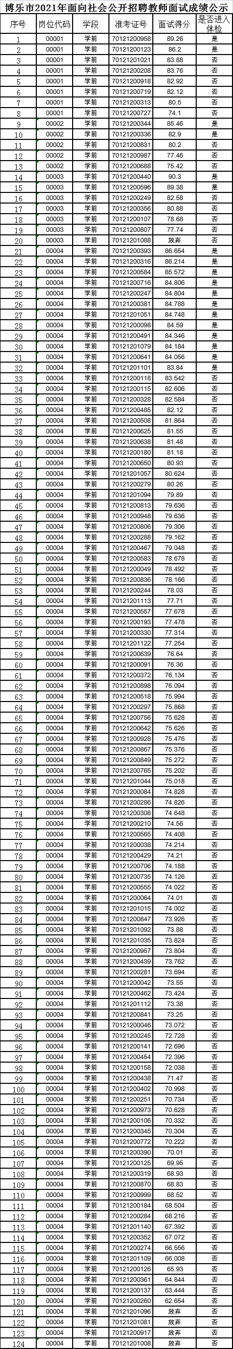 根据《2021年博州面向社会公开招聘中小学和幼儿园教师简章》文件要求,按照公开、平等的原则,经过报名和资格审查环节,于2021年7月9日至7月12日组织了面试考试,现将参加博乐市面向社会公开招聘幼儿园教师面试考生的成绩进行公示,公示期为2021年7月14日至2021年7月20日(共5个工作日),如对公示结果有异议,可逐级向博乐市教育局纪检办、组织人事办反映。