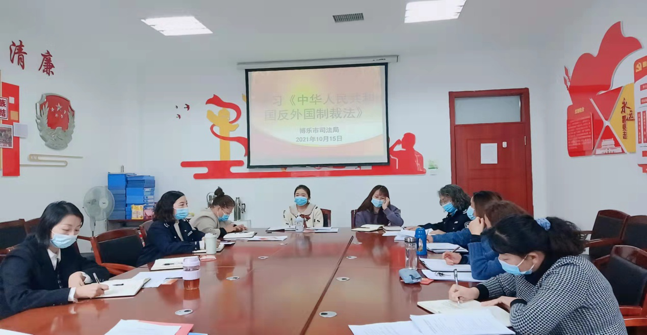 10月15日上午,博乐市司法局干组织全体干部职工学习了《中华人民共和国反外国制裁法》,增强了做好维护国家主权、尊严和核心利益的自觉性。