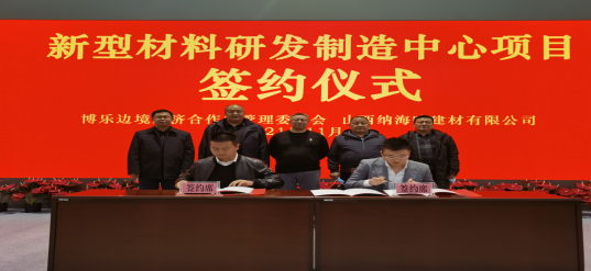 2021年11月4日下午,博乐市人民政府与山西纳海鸣建材有限公司开展座谈并签订总投资9亿元的新型材料研发制造中心项目框架协议。