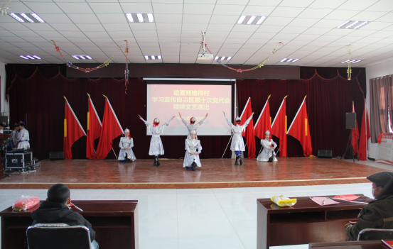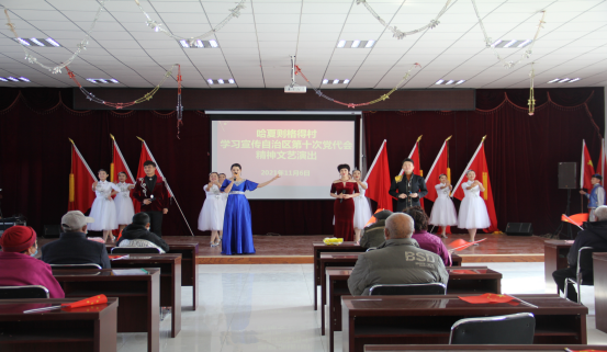 11月7日,在贝乡哈夏则可得村学习贯彻自治区第十次党代会精神文艺演出活动在蒙古族群舞《心向党》中拉开序幕,女声独唱《美丽中国》、男声独唱《赛里木湖的云》、歌伴舞《新的天地》等精彩纷呈的节目轮番上演,为观众带来了一场视听盛宴。