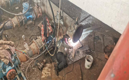 11月6日,中水三级加压泵房处(北京路泵房)主管网盲板爆裂,致使中水(达到国家一级A排放标准)无法进入南城中水库,处理达标后的中水只能从工业区老管网排污口(达镇原七彩电站以东处)和二级加压泵房处(公墓泵房)溢流至博河。博乐市清源水处理有限责任公司第一时间组织人员进行抢修,更换北京路中水泵房主管网DN600肓板。