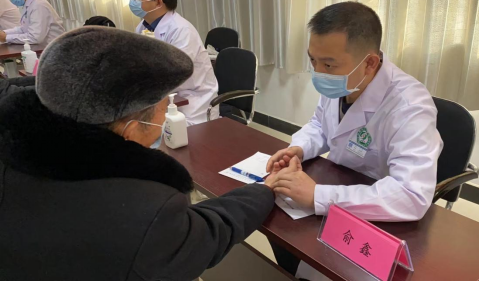 村民苏森鸣四处求医无果,听到有武汉援博专家来义诊,一大早便赶来义诊现场。博乐市人民医院中医皮肤科主任俞鑫(武汉援博专家),发挥其专长,通过“望”“闻”“问”“切”为其答疑解惑,俞主任专业而耐心的诊疗,让苏森鸣为其竖起了大拇指。