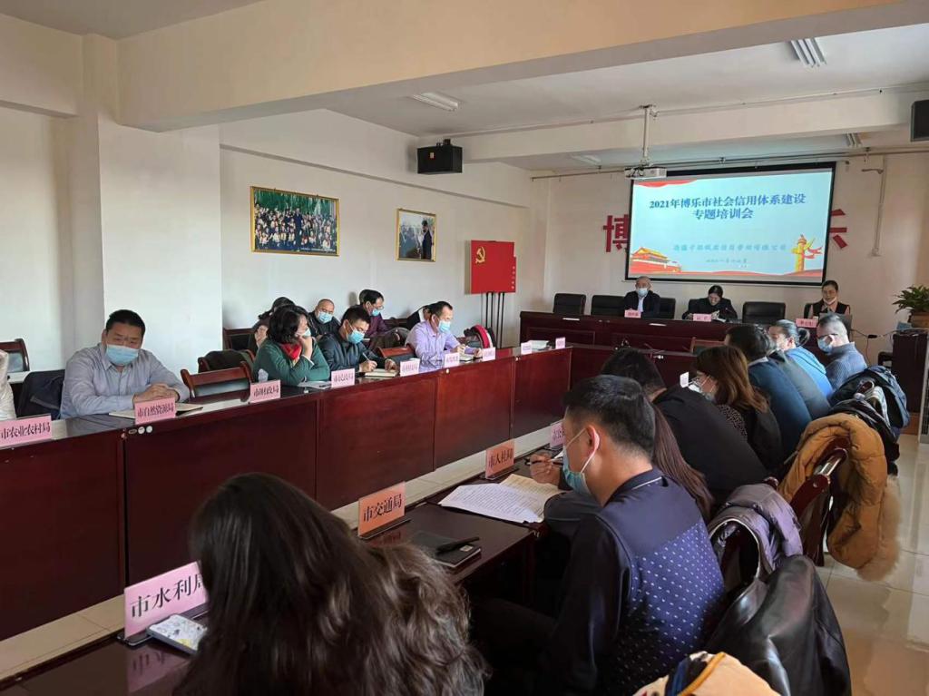 为全面推进社会信用体系建设,2021年12月2日下午,博乐市专门邀请到新疆中联诚实信用管理有限公司董事长李七七一行人开展社会信用体系建设专题培训。会议首先通报了我市社会信用体系建设推进情况,从平台搭建、“双公示”信息报送、“信易贷”录入及推广、诚信体系建设等6个方面进行了报告,同时对进一步建立完善社会信用体系制建设等6个方面提出了工作要求。