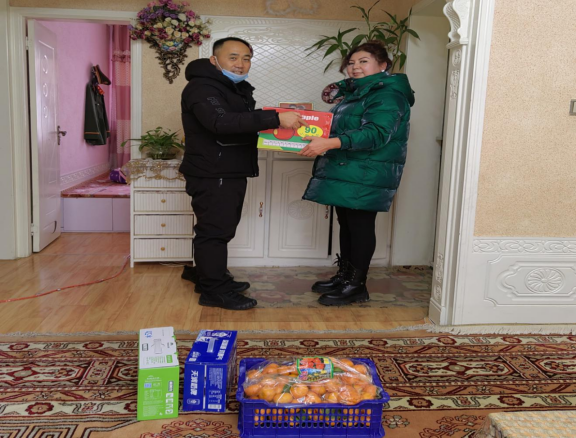 带着对各基层干部浓浓的关切之情,12月31日,在元旦节日来临之际,博乐市民政局党组书记巴衣尔、民政局党组成员、副局长李梓强分别带队慰问博乐市小营盘镇居绿格村驻村“访惠聚”工作队、南城区街道前程社区“访惠聚”工作队、驻村管寺以及博乐市民政局疫情防控抽调干部阿不都热依木的家属家中进行节前慰问,并为他们带去水果等慰问品,为驻村干部及其家属送上关心和节日的祝福。