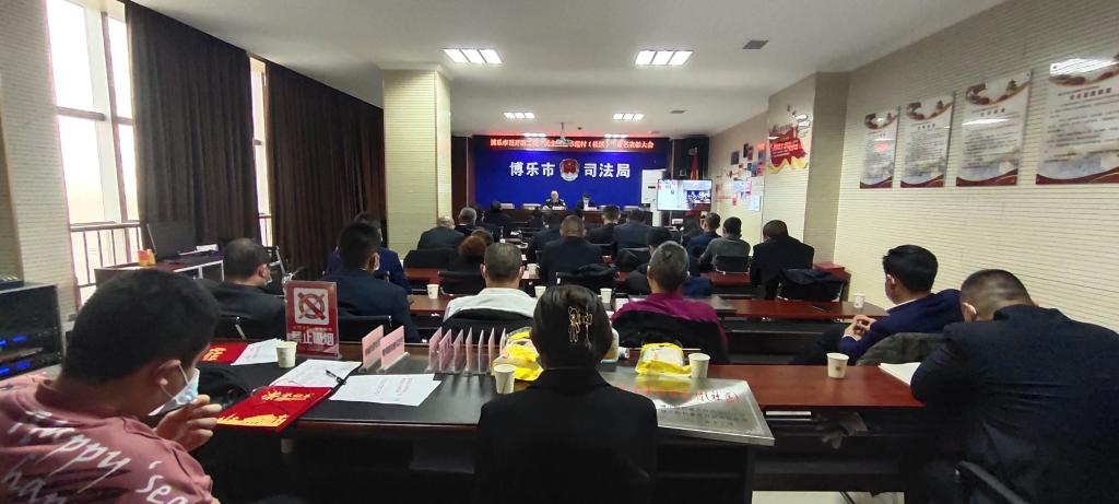 为推进乡村治理体系和治理能力现代化,加强法治乡村建设,2022年1月6日,博乐市司法局联合博乐市民政局召开2021年第二批“民主法治示范村(社区)”命名表彰大会。6个乡镇场司法所干事及20个受表彰的村队负责人参加会议。