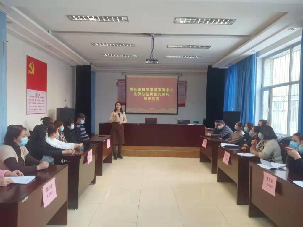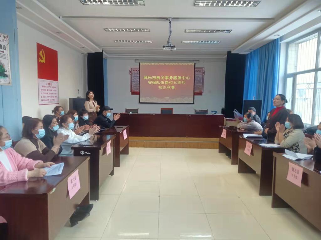 为有效增强安保队伍的综合业务能力,激发岗位服务的积极性,进一步推动安保队伍建设,表扬先进、树立保安优秀典型,1月14日,博乐市机关事务服务中心举办安保队伍“岗位大练兵”知识竞赛活动,竞赛内容主要为安防基础性业务知识及民族团结、平安建设、去极端化等相关应知应会内容,参赛队伍以执勤楼栋为单位,分为八组,竞赛由个人必答题、个人抢答题、团体必答题、团体抢答题四个环节组成。
