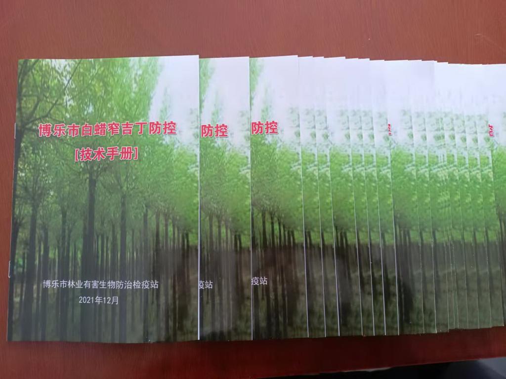 为进一步巩固防控成果,做好当前和今后一个时期白蜡窄吉丁虫防控工作,博乐市林检站与新疆农业大学阿地力·沙塔尔教授对白蜡窄吉丁虫的防控措施进行研讨,结合博乐市近几年的防控经验,编制了《博乐市白蜡窄吉丁防控技术手册》,手册涉及白蜡窄吉丁分布及危害的认识知识,白蜡窄吉丁虫态识别和防控技术措施、方法,手册利于林木经营单位学习和使用。