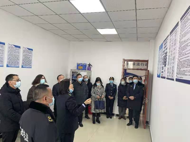 2022年2月15日,精河县市场监督管理局副局长翁海涛带领该县乡镇市场监管所一行13人,实地观摩了博乐市青得里镇市场监管所标准化规模化建设情况,认真查看了日常巡查、投诉受理、执法装备、队伍建设、基础设施设备建设等情况。