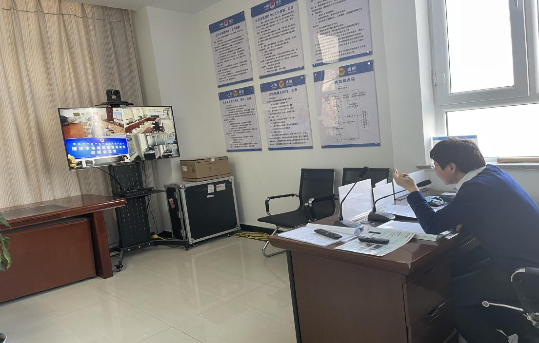 “云视讯”实现了法律服务业务线上和线下的无缝对接,线上对基层法律服务工作者进行培训,对重大复杂矛盾提供远程援助。充分利用“智慧司法”,推动线上调解机制建设,方便群众及时享受公共法律服务。“云视讯”网络终端公共法律服务工作室可连线博乐市6个乡镇(场)、5个街道司法所,105个村队54社区,通过远程视频方式直接让博乐市居民能够在“家门口”享受公共法律服务。