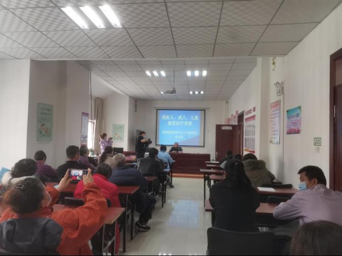 其次开展宣传讲座。博尔塔拉蒙古自治州明智儿童康复中心负责人高媛媛讲解0-16岁残疾儿童康复教育知识,博乐市残联宣传文体负责人乌彩彩讲解惠残政策,南城街道滨河社区卫生服务站负责人李兴隆讲解残疾人、成人、康复儿童的康复治疗教育知识。