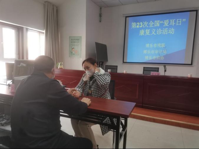 2022年3月3日是全国第23个“爱耳日”,为了促进社区居民的听力残疾预防与康复工作,提高人民爱耳、护耳意识,有效减少听力残疾的发生。3月1日,博乐市审计局、市科协“访惠聚”工作队所驻幸福社区同博乐市残联联合举办以“关爱听力健康,聆听精彩未来”为主题的爱耳日活动,参加活动的有博乐市审计局、市科协、市残联、南城区街道各社区以及辖区内居民。