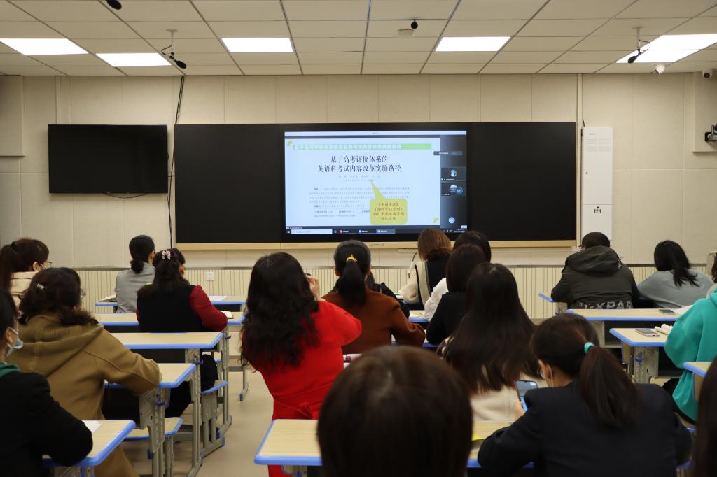 华中师大一附中学生发展中心主任周珂做《基于高考评价体系的高考数学全国卷的备考建议》讲座。周老师从中国高考评价体系的“一核四层四翼”切入,向老师们讲述了高考数学的学科化实践;并以近年新高考的全国卷为例,从宏观、微观和策略层面介绍了高考试题研究的基本思路。周老师表示,对于2021年高考数学全国卷要通盘考虑,全面研究,不能孤立地、片面地分析。