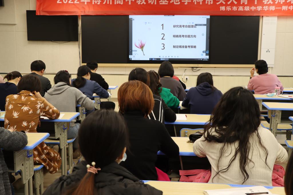 为贯彻落实新时代党的治疆方略,加快推进教育治理体系和治理能力现代化,共绘新时代教育援疆新画卷,3月8日至9日,依托湖北援疆的大力支持,我校联合华中师大一附中总校共同筹备了2022届高考备考系列讲座,发挥专家引领作用,助力我校高三年级高考备考工作。本次高考备考讲座特别邀请了华中师大一附中总校的各学科专家老师开展,我校领导、其他县市兄弟中学、我校各学科老师参与了本次讲座。