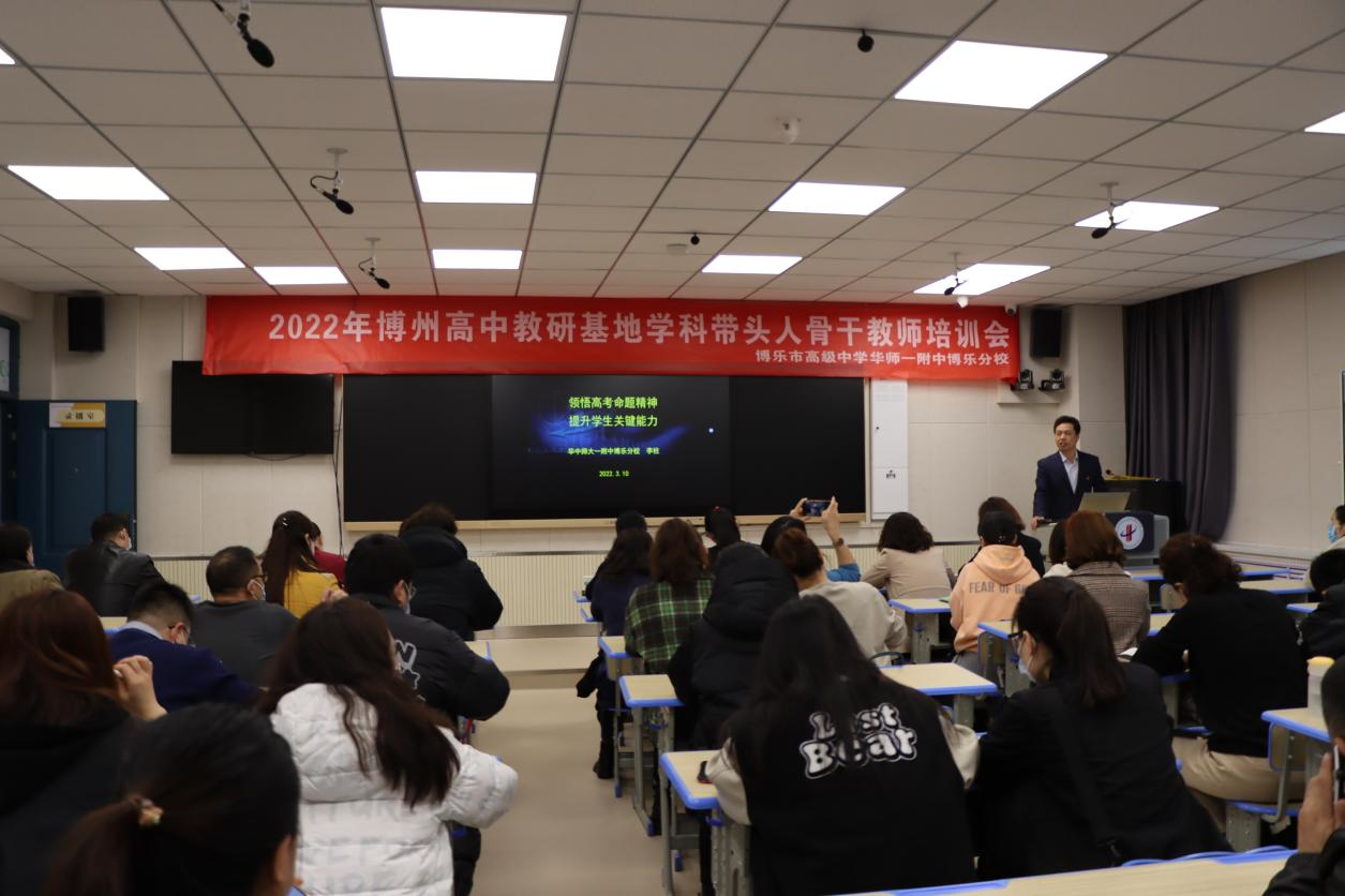 为认真贯彻落实党的教育方针,办好人民满意的教育,立足课堂教学研究,聚焦解决当下教学难点、热点问题,充分发挥自治州高中教研基地校的示范引领作用,打造高素质教师队伍。2022年3月10日-11日在州市教育局领导的大力支持下,博乐市高级中学华中师大一附中博乐分校成功举办了2022年博尔塔拉蒙古自治州高中教研基地学科带头人、骨干教师培训会。