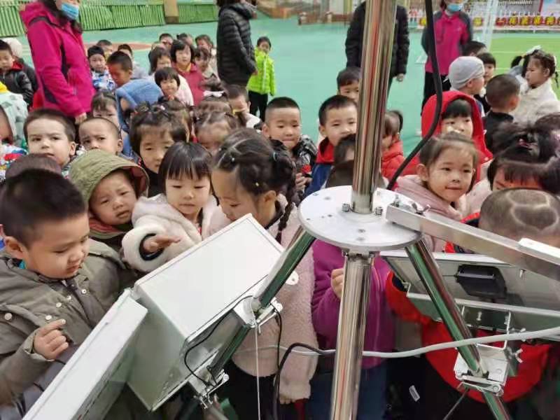 各种先进的气象设备,吸引了孩子们的目光,气象局的叔叔阿姨们首先为孩子们介绍了便携式自动气象站。 气象火箭,是用于探测中层大气参数的温度,压力,密度及风速风向等气象参数的火箭,在各类探空火箭中,气象火箭是发射最频繁,发射次数最多的一种火箭,用火箭进行气象探测试,收集大气资料的一种重要手段。