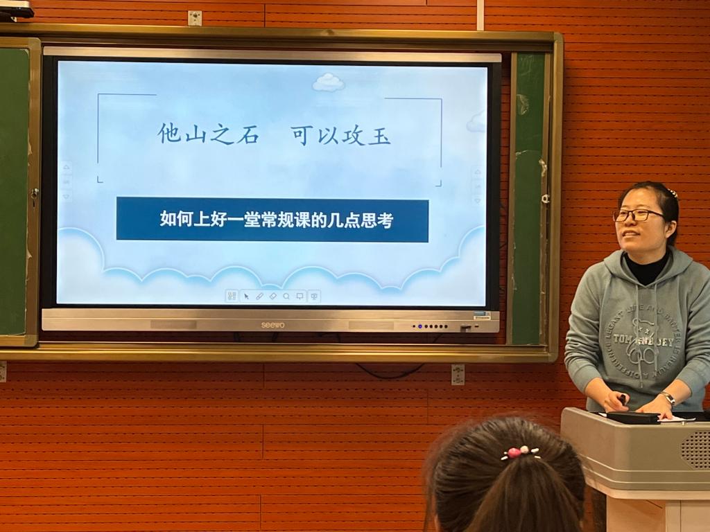 博乐市骨干教师郭开艳为青年教师们带来了一场,以《如何上好一堂常规课的几点思考》为主题的讲座。郭老师从一堂常规课的教学环节、备课注意事项、教学实施流程等方面入手,结合自己的教学经验,手把手教大家如何上好一堂朴实无华却无比重要的常规课。似及时雨般的精彩分享,贏得了大家热烈的掌声。