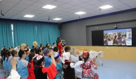 (博乐市第一小学507班学生与湖北省武昌实验小学五1班学生连线中)