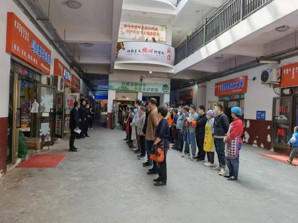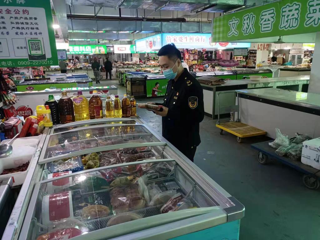 从职能职责入手,巩固成果抓创城。瞄准农贸市场管理痛点堵点,组织市场入驻干部每日对市域7家农贸市场内外环境、内部经营秩序、食品安全、产品安全等开展常态化检查,坚决取缔占道经营、违法经营行为,强化案件查办力度,对守信者“无事不扰”、对失信者“利剑高悬”,营造宽严相济、环境整洁、井然有序、安全消费的市场秩序,消除存在的各种安全隐患,巩固深化创城成果。