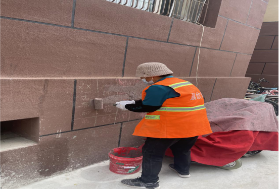 活动中,市国资委干部和晨欣物业公司干部拿着铲子、滚筒、刷子、扫帚等工具,清理小区的小广告、打扫楼道尘土,并将广告喷印处、墙皮脱落处进行粉刷遮盖,墙面基本做到了干净卫生、整齐划一。
