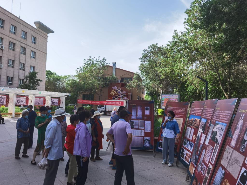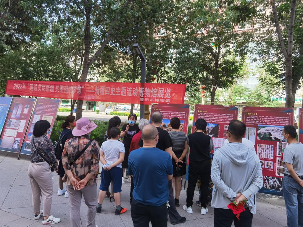 博乐市博物馆开展为期一个月的“建设美丽新疆 共圆祖国梦想”--新疆四史主题流动展进村队社区活动,以图文并茂的展板形式,工作人员的详细讲解,生动形象地向群众展示了新疆作为丝绸之路要塞和人类古代四大文化体系交汇处、多民族聚居、多种宗教并存、文化一体多元的历史。