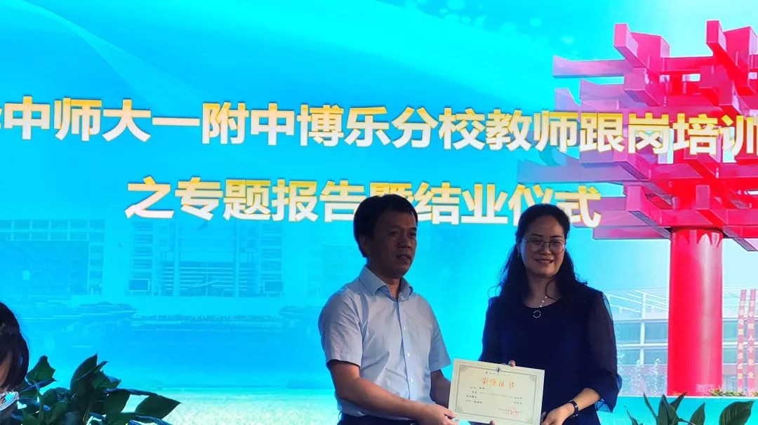 在6月17日上午,总校举办了华中师大一附中博乐分校教师跟岗培训专题报告暨结业仪式,此次活动由校长助理高明主持,高一级部主任魏群作了关于《卓越联盟学校和总校文化之间的传承和发扬》的报告。校长助理高明首先指出,跟岗学习后老师们要从总校和博乐分校之间找差异,积极思考改进策略,批判性地去吸收,不要全盘接纳。魏群主任对自己三年的援疆生活用“真诚、收获、家”为关键词进行了总结,向我们展示了她在新疆美好的回忆,并以四大主题作为本次报告的核心:三年援疆路、一生援疆情;总校博华、一脉相承;华一特色、与时俱进;守正创新、笃行致远。