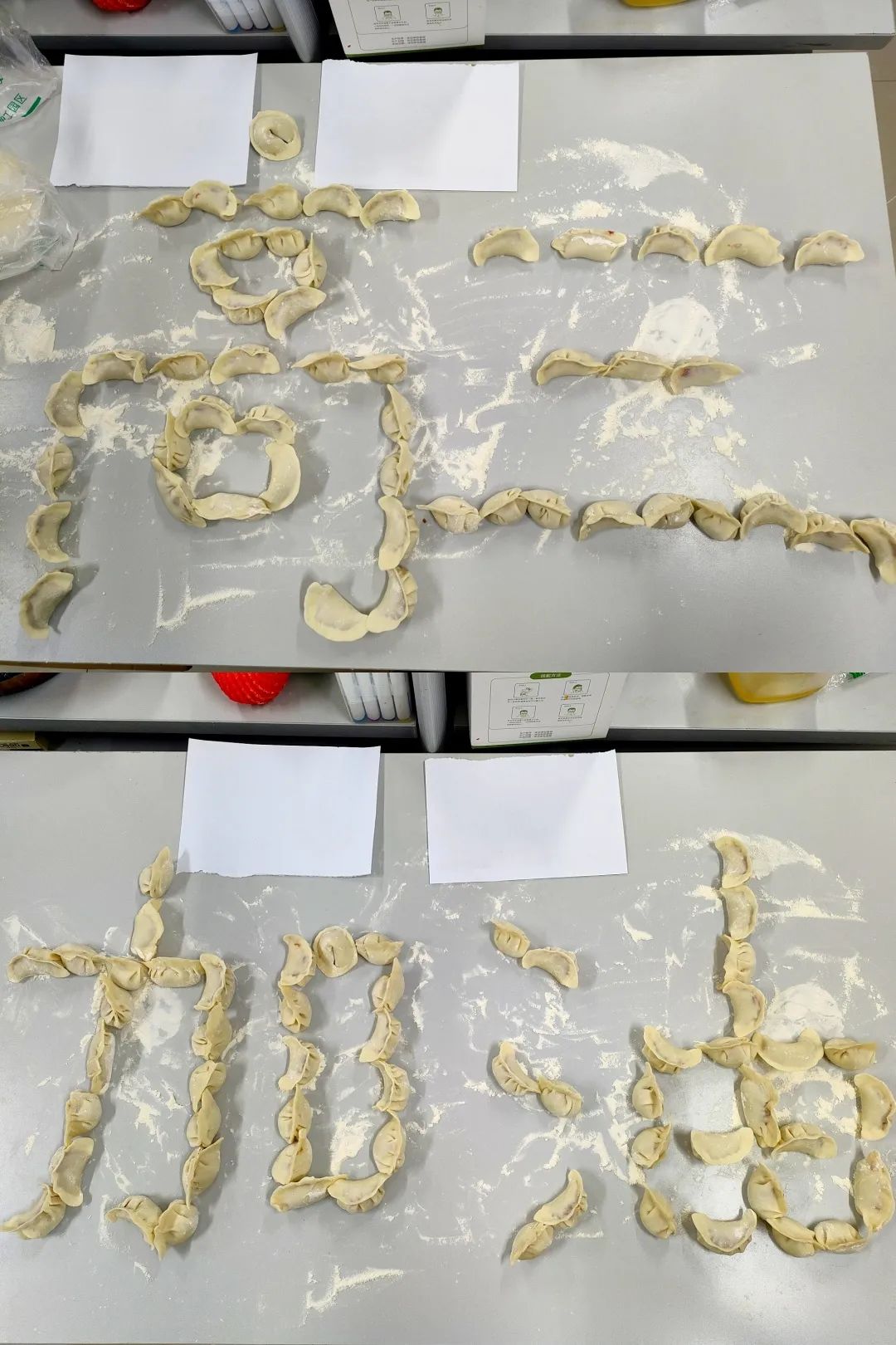 “饺子有教子之意,我们老师用心教育,也祝愿我们博华学子能够再创佳绩!”高三语文组的各位老师独具匠心,把包好的饺子排列成“高三加油”的字样,为仍然留校奋斗的高三学子加油鼓气。
