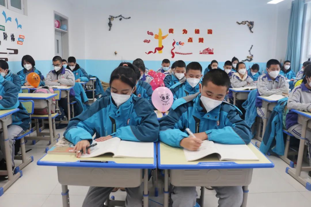当日,记者在博乐市第二中学校园内看到,长约20米的红毯直通签名墙,红毯的两侧用各式各样的气球装点,学校乐队小鼓手打着鼓,鼓声震天,学校的吉祥物胡小杨和慧小杨与每名入校学生互动,学生在踏入校园的一刻就感受到满满的仪式感。