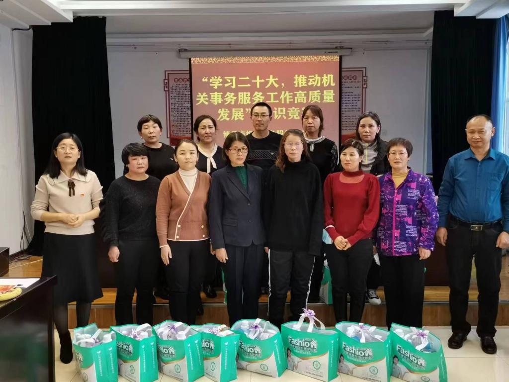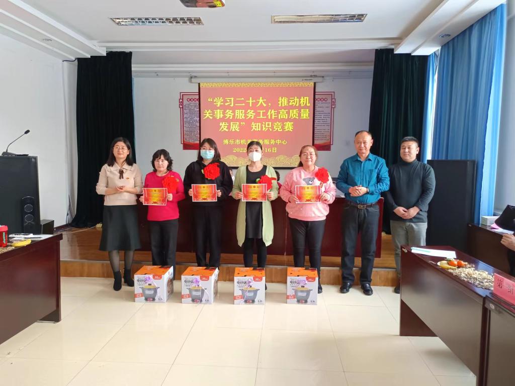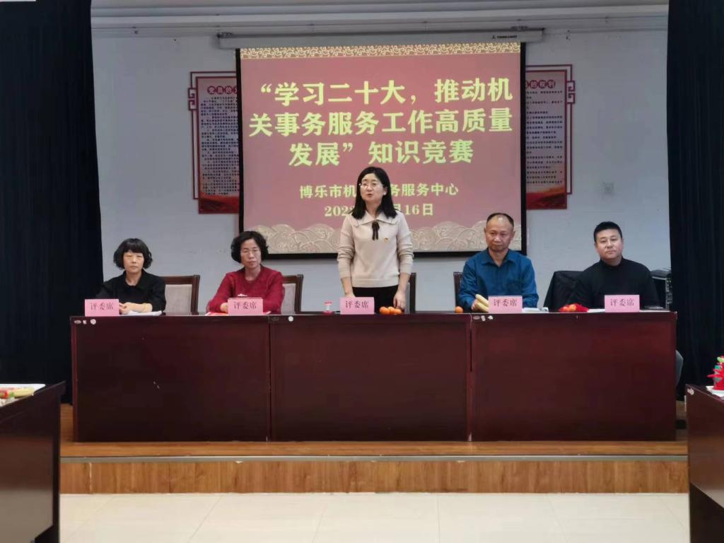 为深入学习贯彻党的二十大精神,推动机关事务工作高质量发展,12月16日,博乐市机关事务服务中心开展了“学习党的二十大·推动机关事务高质量发展”知识竞赛活动,以赛促学,鼓励干部职工积极学习党的二十大精神,以先进理念武装头脑、指导工作。中心干部职工纷纷响应,共有28名同志踊跃参与,活动取得了良好的效果。