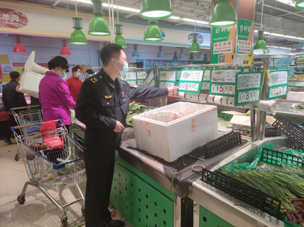 市场监督管理局出动执法人员6人,共检查食品经营户21家,其中检查大型商超2家,超市12家,农贸市场1家,餐饮6户,以肉制品、米面粮油、调味品、乳制品、酒类等节日消费量大的产品为重点品种,以食品批发商、食品生产经营单位、餐饮服务单位、超市、农(集)贸市场为重点场所,重点检查营业执照、食品经营许可证是否齐全;是否严格落实索证索票、进货查验记录;是否销售过期和“三无”产品,肉类检验检疫情况;商品是否明码标价等内容,查处销售假冒伪劣食品以及食品标识标签不符合食品要求等行为。针对检查中发现的食品安全隐患与问题现场责令要求整改,对隐患产品要求立即下架,后期还会针对本次检查问题进行“回头看”,督促经营户整改。