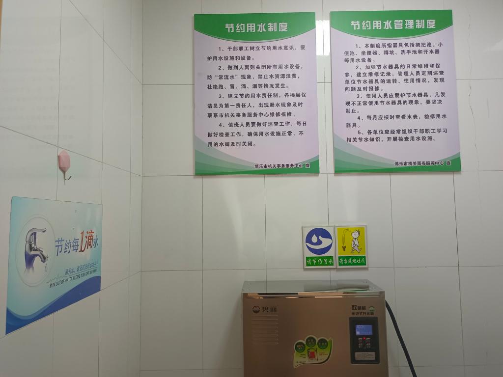 为进一步践行习近平总书记关于“绿水青山就是金山银山”的新时代生态文明理念,在“中国水周”期间,博乐市机关事务服务中心通过微信公众号、发放宣传册、机关食堂电视及LED大屏滚动播放“公民节约用水行为规范”视频和节水标语等形式,在市直行政办公区开展“节水点滴 你我同行”系列宣传活动,营造惜水、爱水、节水、护水的浓厚氛围。