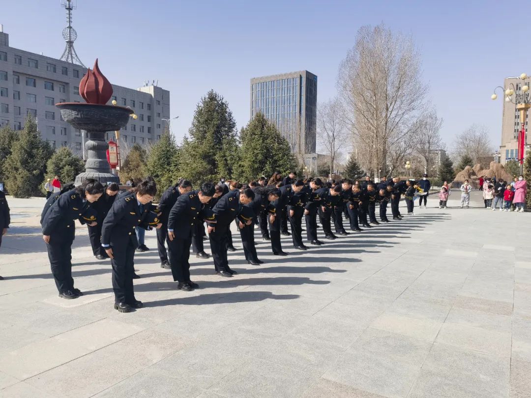 活动现场,庄严而肃穆,全体干部怀着无比崇敬的心情列队肃立,集体鞠躬默哀,向革命先烈敬献鲜花,共同缅怀为了国家解放、民族独立而牺牲的革命先烈们,表达崇高的敬意和深切的哀思。