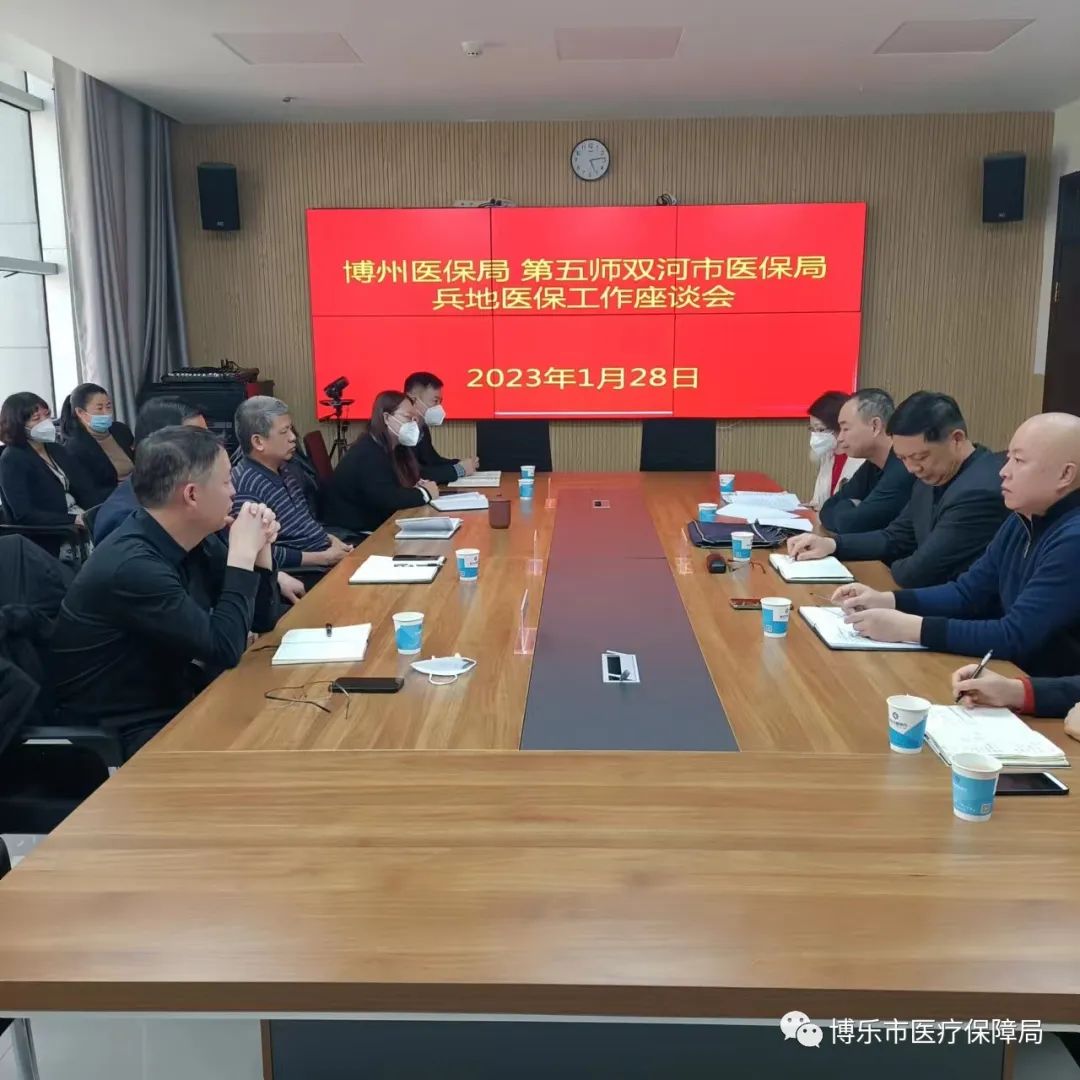为促进兵地就医工作互通,满足兵地群众就医需求,博州、博乐市医疗保障局与双河市(第五师)医疗保障局领导进行座谈。协商在前期兵地融合趋于成熟基础上,继续开通博乐市中西医结合医院(博乐市人民医院)的门诊、住院互通定点医疗机构业务。