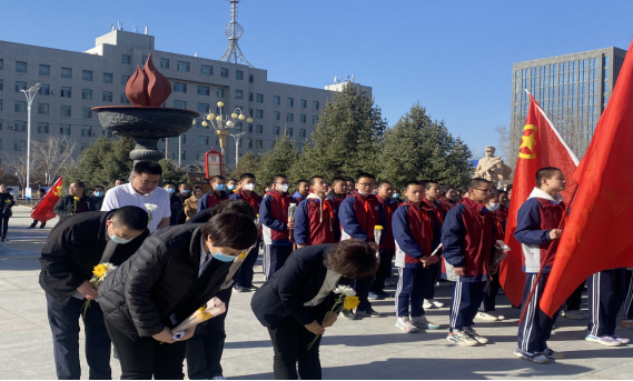 在烈士纪念碑前,全体向烈士默哀,共同缅怀先烈革命功绩。在铭刻着“革命烈士纪念碑”前,干部们整齐列队、逐一为烈士敬献鲜花,寄托哀思,并重温入党誓词。