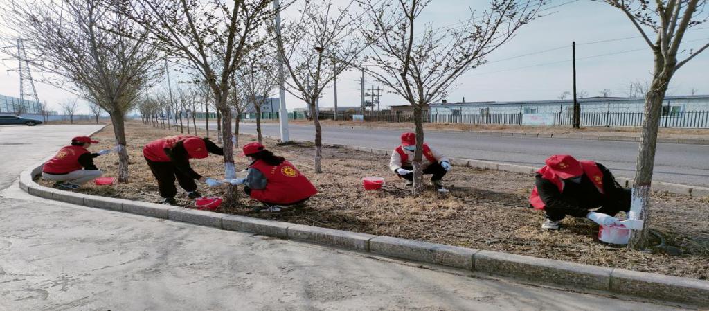 活动中,社区干部热情高涨,忙中有序,分工明确,大家拿着桶、石灰、刷子、油漆等工具分别来到分包路段,配合默契,不怕脏,不怕累,手指树刷,按照止口平整、均匀统一的要求认真细致,反复涂刷。在大家共同努力下,一棵棵树木相继穿上了白色“新衣”。