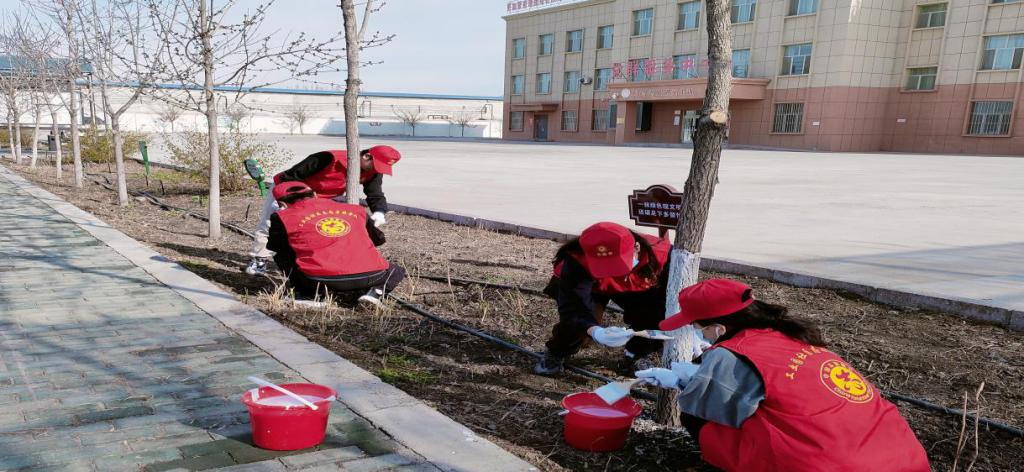 春回大地,万物复苏,为提高园区居民护绿意识,掀起美化家园、改善生态环境的高潮,为有效防止害虫在树上繁殖,危害树木,4月13日上午,边合区工业园社区开展“刷树护绿、美化环境”志愿服务活动。