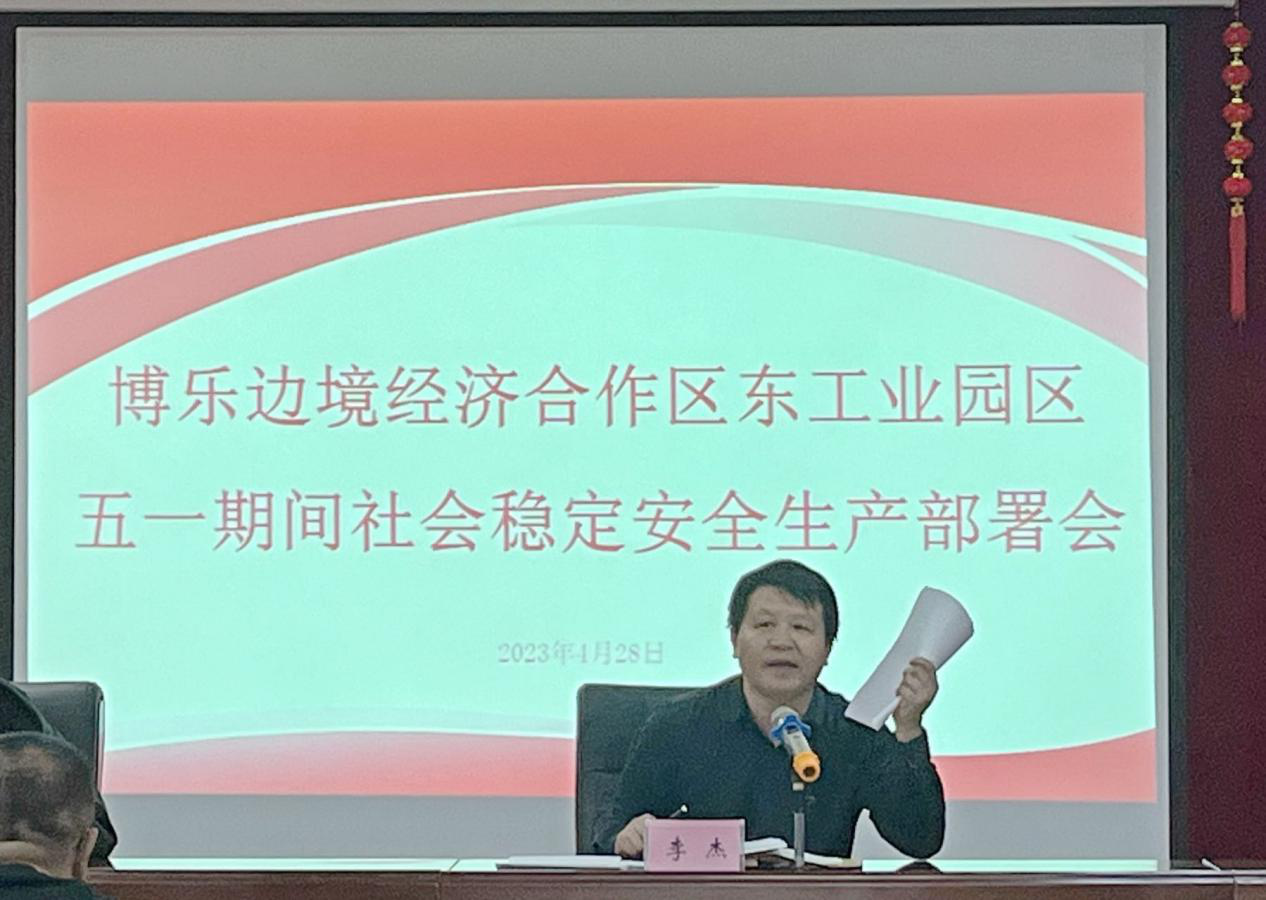 为确保“五一”期间辖区企业生产安全有序,4月28日下午,由边合区管委会副主任李杰召开专题会议,提前部署节日期间安全生产工作。