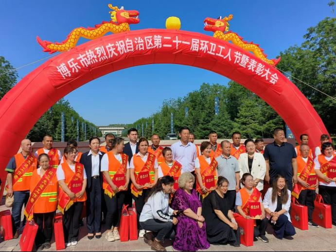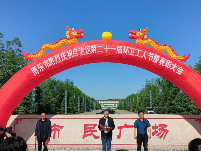 5月26日上午,博乐市在市民广场举行庆祝自治区第二十一届环卫工人节暨“环卫工人先进工作者”表彰大会活动。共60余名职工参加了活动。博尔塔拉蒙古自治州住建局党组书记、副局长徐辉同志、博乐市人民政府党组成员、副市长刘曙光同志出席活动,表彰活动由博乐市住房和城乡建设局党组成员、局长倪春健同志主持。