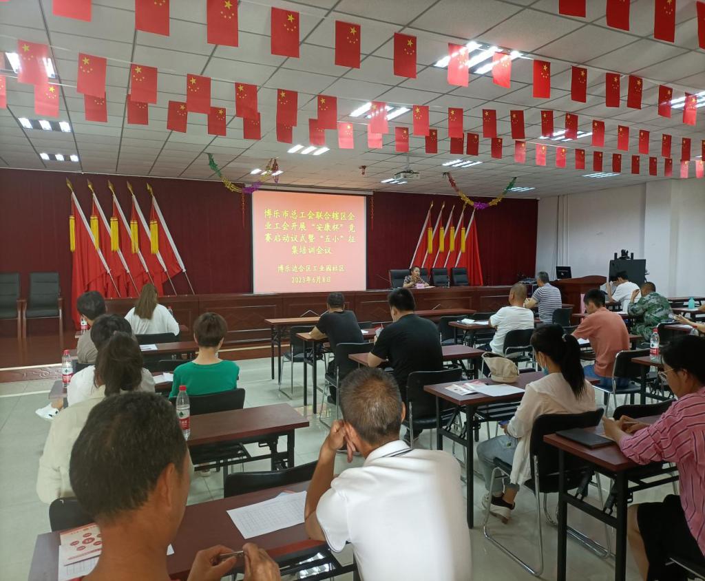 会议邀请博乐市总工会孙丽君对“安康杯”竞赛活动进行了学习培训。辖区40余家企业工会负责人及安全生产委员参加此次培训。