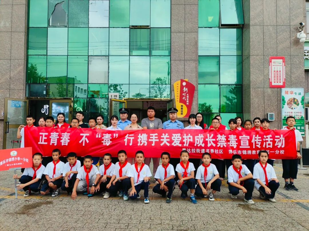 6月19日,博乐市锦绣小学教育集团一分校(博乐市第七小学)组织学生前往博乐市青达拉街道书香社区禁毒教育基地参观学习,由博乐市公安局禁毒大队民警为同学们上了一堂形象生动的禁毒、防毒知识课。