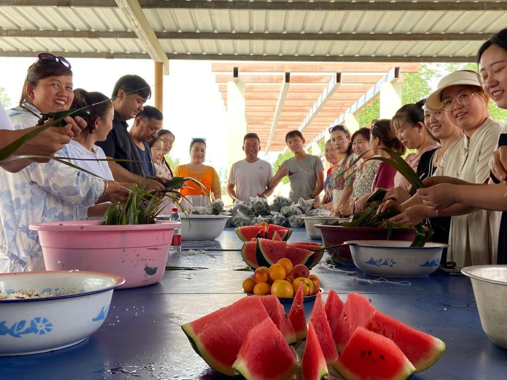 粽叶飘香迎端午,粽香情暖心更暖。为深入学习宣传贯彻党的二十大精神、习近平总书记关于加强和改进民族工作的重要思想和贯彻中央民族工作会议精神,有形有感有效铸牢中华民族共同体意识,在端午节、古尔邦节来临之际,博乐市机关事务服务中心、“访惠聚”驻村工作队与达勒特镇妇联共同举办了“爱家乡·民族团结一家亲”联谊活动。