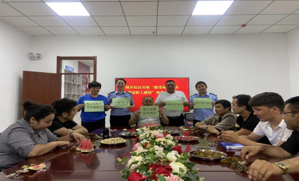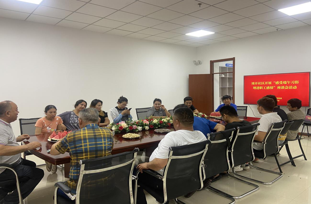 又是一年端午节,片片粽叶裹温情。为弘扬中华民族优秀传统美德,进一步促进辖区各企业职工、居民的感情,增进大家对传统文化的了解。6月21日下午,边合区博开社区开展“感受端午习俗 增进职工感情”座谈会活动。