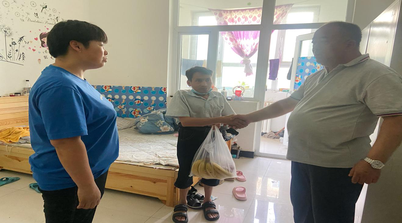 活动最后,博开社区党支部书记何军与务工人员工作队队长特来提慰问了辖区的困难职工,为他们献上了精美的小礼物,在交流中鼓励困难群众要通过自身的努力改善家庭生活环境,并为他们送上了诚挚的节日问候。