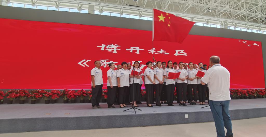 红歌嘹亮庆七一,激情满怀颂党恩——活动现场,伴随着一首《歌唱祖国》将活动气氛引向了高潮。他们身着统一服装,迈着整齐的步伐,以良好的精神面貌登场亮相;博开社区合唱代表队以满腔的激情、壮丽的歌声,铿锵有力地唱出了对党和祖国的赞美与热爱,他们精彩的表演赢得了现场观众阵阵掌声,抒发全体干部职工对党的美好祝福、对伟大祖国的深切热爱。