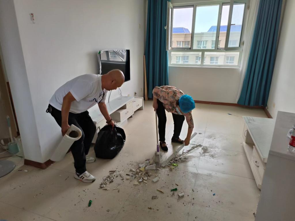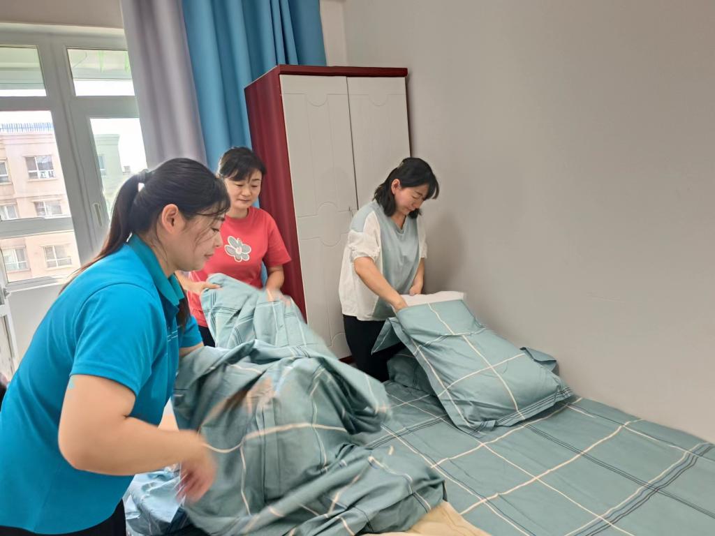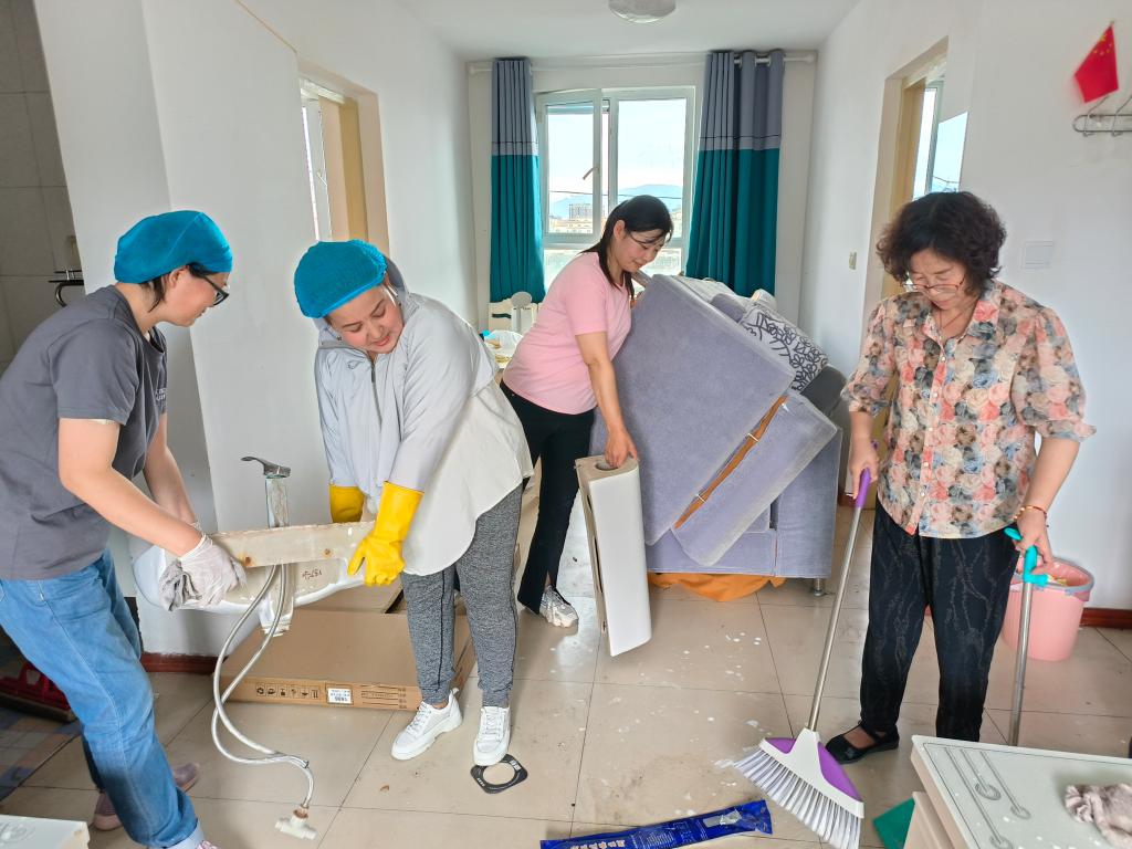 中心领导统筹安排,以细微点滴为出发点,从衣食住行等生活细节方面,彰显出对援博干部们的真挚关怀。一是对援博楼干部宿舍内的水、电、灭火器、热水器淋浴、电视网络信号等设施设备进行了细致全面的排查维护,消除安全隐患,同时将楼内单元门、卫生洁具等部分损坏的设施设备重新更换,确保楼内各项设施安全平稳运行使用;二是对楼体室内外墙面、屋顶等进行重新粉刷修缮,粉刷后整体焕然一新;三是对援博干部宿舍内的家居床品、洗漱用品等重新更换,并对室内外垃圾和周边环境卫生进行了彻底打扫和清运。