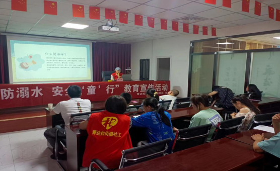 社工向未成年人及其家长现场讲解防溺水基本常识,会游泳不等于不会溺水,水性好不等于不会溺水,放下侥幸,提高警惕。让他们认识到防溺水的重要性,提高自我保护意识和防范能力,增强防溺水等安全事故的自觉性,让防溺水意识根植于心。