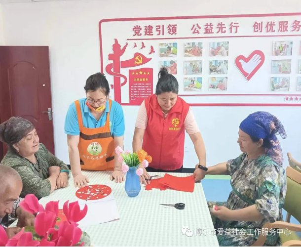 剪纸作为一项我国古老的民间艺术,是中华优秀传统文化的重要载体,深受人们的喜爱,为进一步弘扬中华优秀传统文化,同时调动老人动手的积极性,丰富老人的业余文化生活,2023年7月19日,在博乐市民政局党组指导下,在乡镇党委及村社区党支部支持关心下,博乐市青得里镇社会工作服务站来到敬老院开展“银龄巧手 剪纸寄情“趣味剪纸活动。